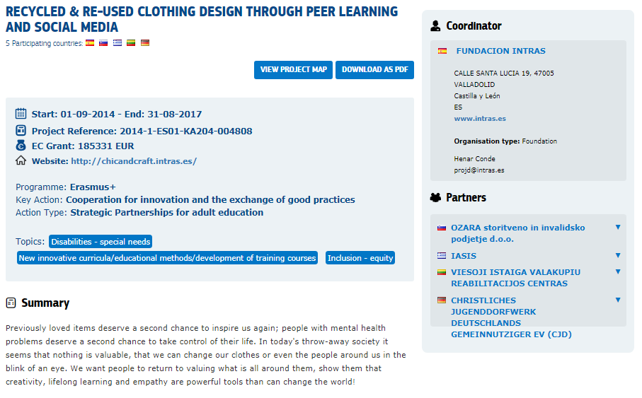 Updated information about the Chic & Craft project is available in the official website of the European Commission to make visible projects’ results. We invite you to take a look to this Project card.