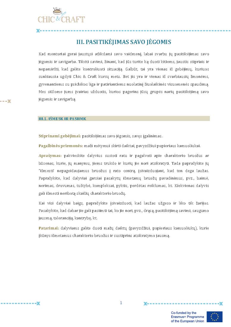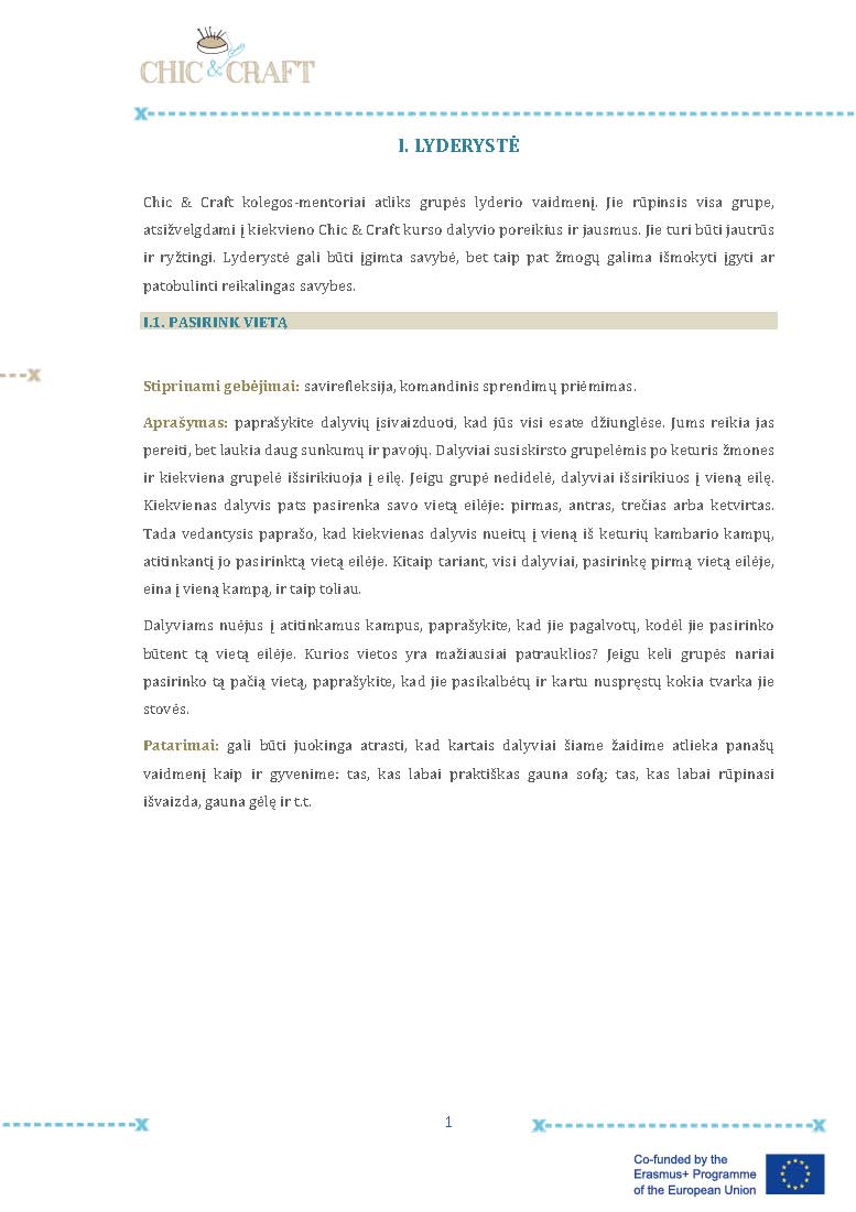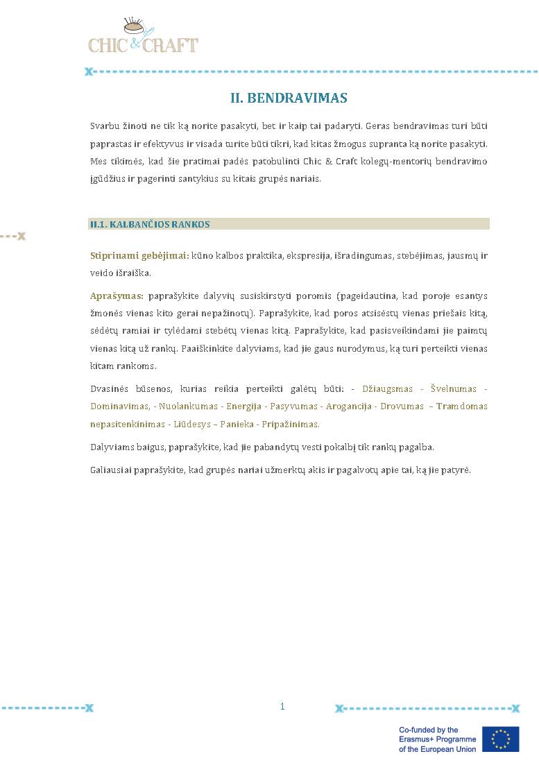 I. LYDERYSTE                   II. BENDRAVIMAS        III. PASTIKIJEJIMAS SAVO JEGOMIS