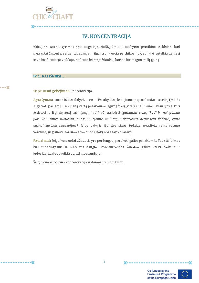 IV. KONCENTRACIJA                V. MOTYVAVIMAS               VI. DARBAS KOMANDOJE